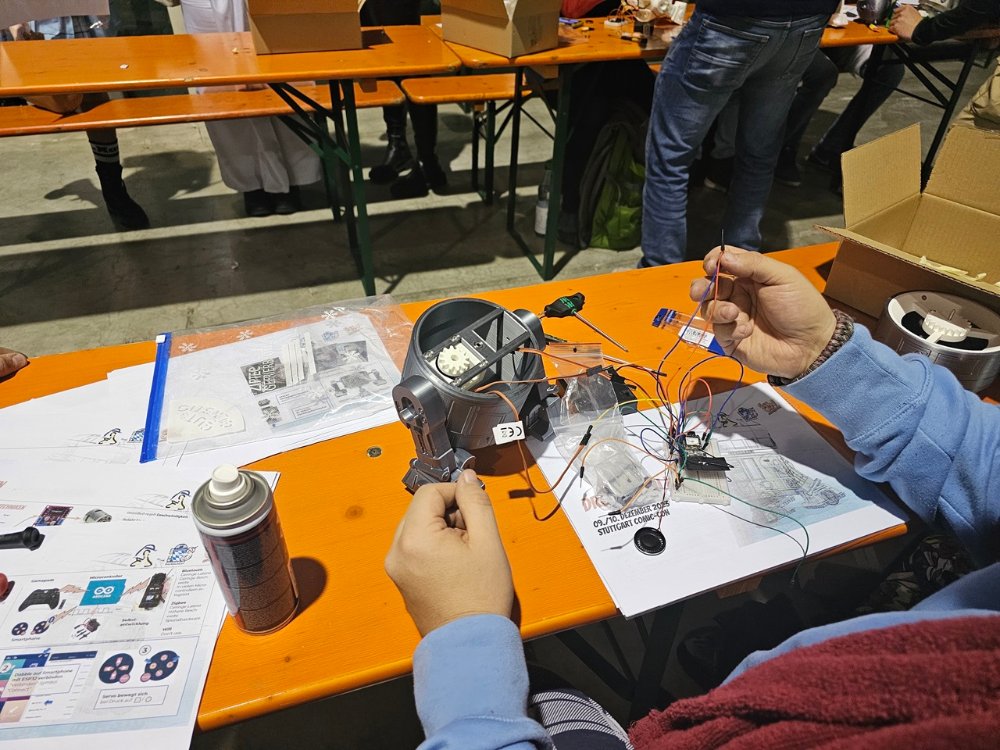 Ganz besonders hervorheben muß man sicherlich Björns "Live Building Event", bei dem Besucher sich einen kleinen, mit dem Smartphone steuerbaren, Astromech-Droiden zusammenbauen konnten. Ein enormer logistischer Aufwand für Björn, der noch bis zur letzten Sekunde auf der CCS Teile für das Event gedruckt hat (weil einige, schon fertige, Teile beim Transport beschädigt worden waren). Typisch CCS war dann auch das Drama um die zu wenigen Patchkabel, für die dann sogar ein lokaler Stuttgarter Makerspace am Sonntag kontaktiert wurde, und der grandioserweise wirklich die benötigten Patchkabel zur Verfügung stellen konnte. Die Jungs haben wir für´s nächste Mal zum Dank schon eingeladen.